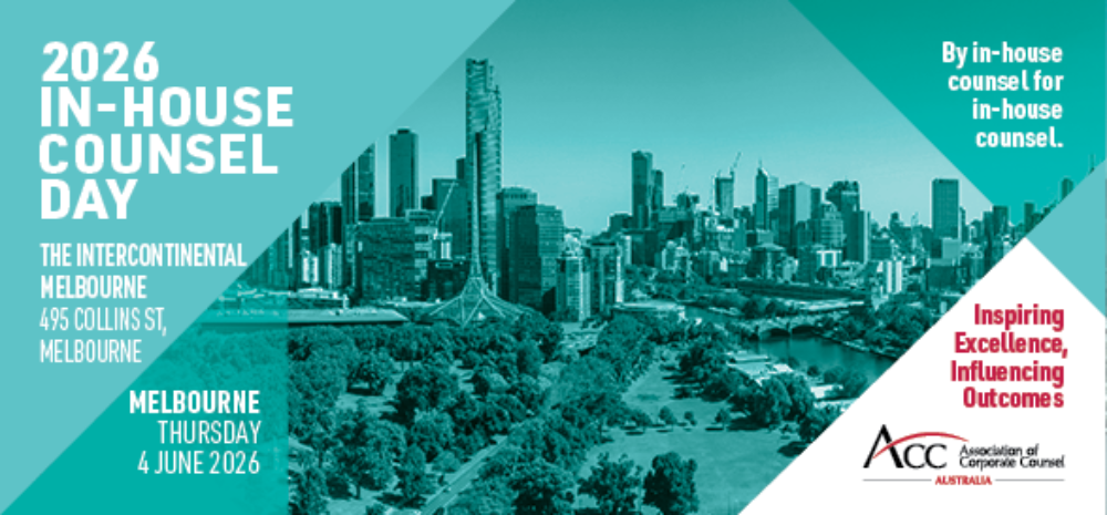 Conference registration is restricted to in-house lawyers working in the corporate or government sector only. If your role or company/organisation is deemed to be outside of this area, you may be excluded from attending this event. If you have any questions, please contact ACC Australia on 03 9248 5500.