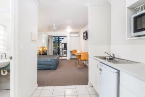 Your gallery style kitchenette features sleek granite bench tops and gives you the convenience of a microwave and sink. Keep in touch with in-room internet access and direct dial ISDN phone. Whether you're visiting Mantra South Bank for a fun weekend, a business engagement, to see a show or any of the other nearby attractions, the Studio Apartment will suit your needs perfectly with mini bar, climate controlled air-conditioning and in-house movies. Maximum 2 people.